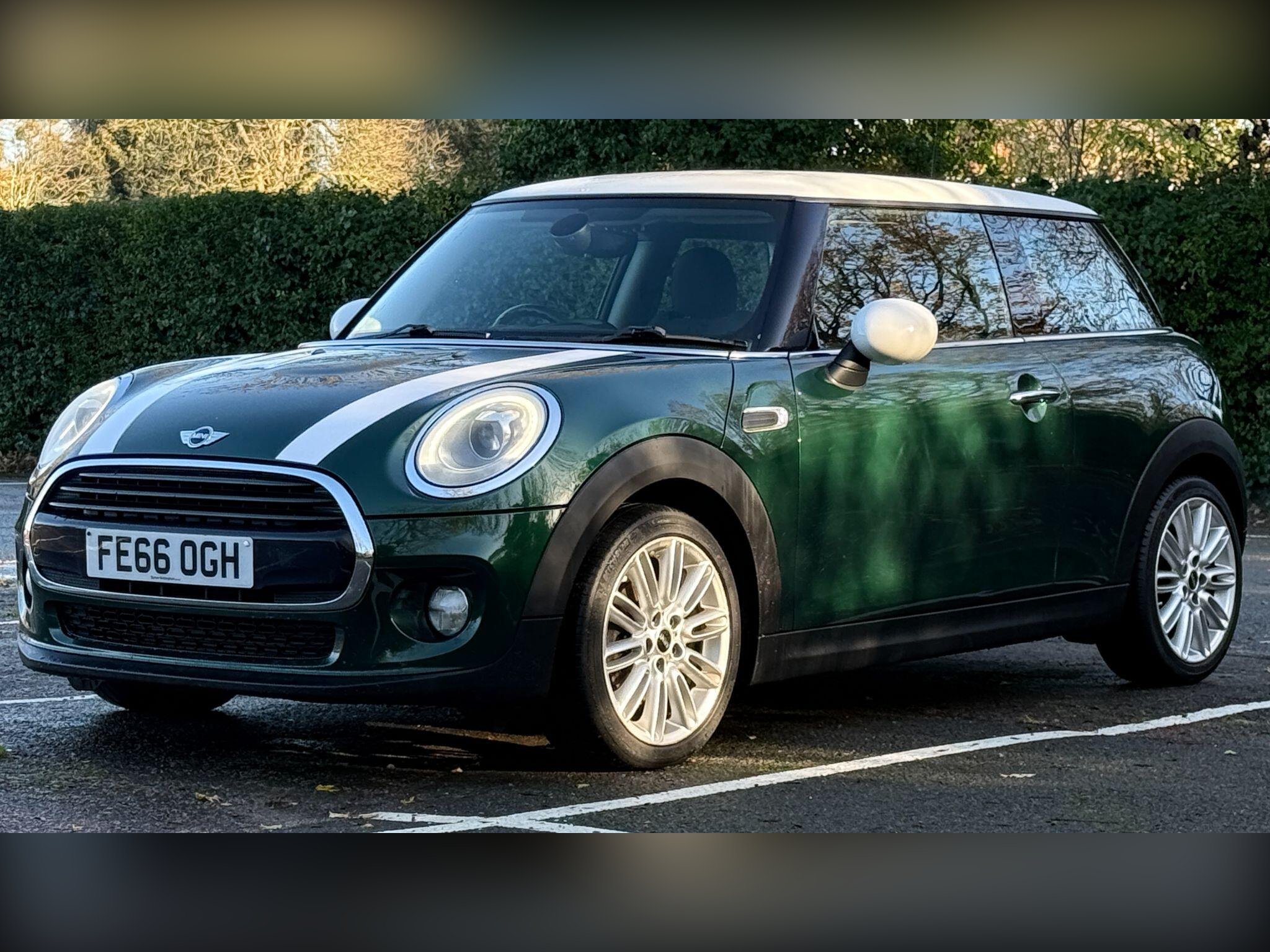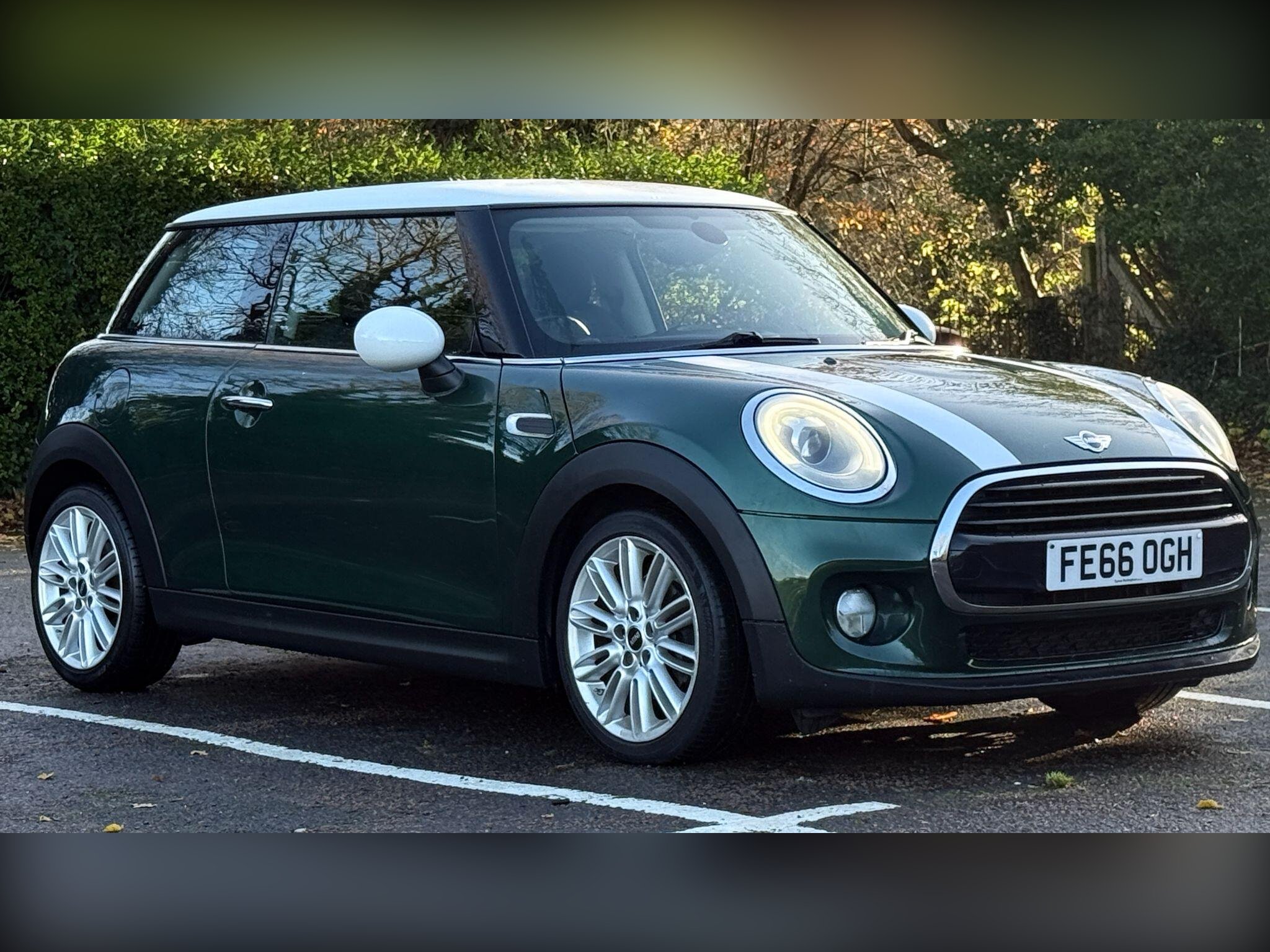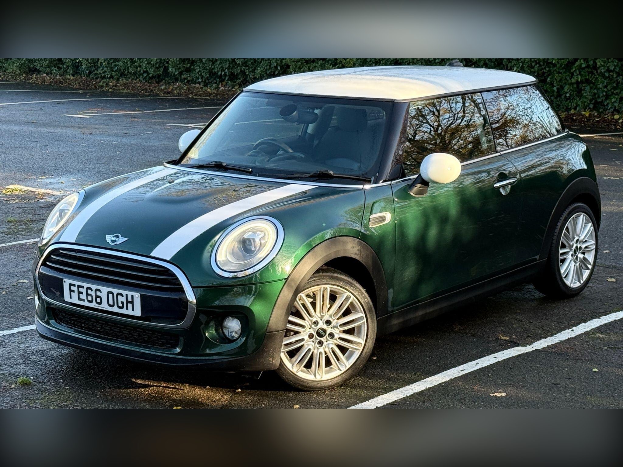 Mini Cooper 1500cc Petrol, in Green metallic with Dark Grey Half Leather Sports Seats, A Great Sporty Looking Low Mileage Mini Cooper, Climate Control, Up Graded Alloy Wheels, Low Mileage, HPi Checked & Clear, 2 Keys, Warranty, Glenbournes @ Hampton Court Motor centre KT8 9AE TEL: 0203 968 0956 or 07836 221295
