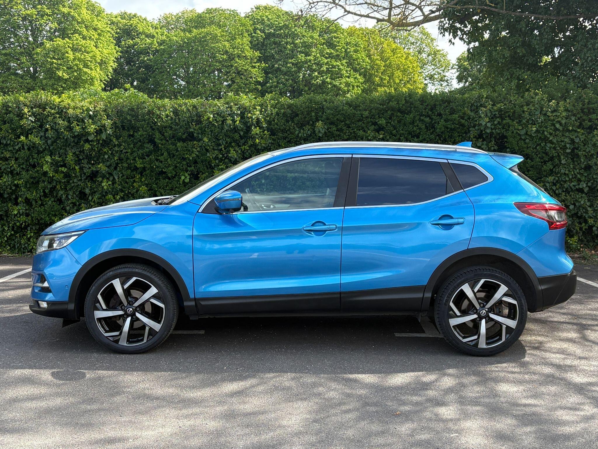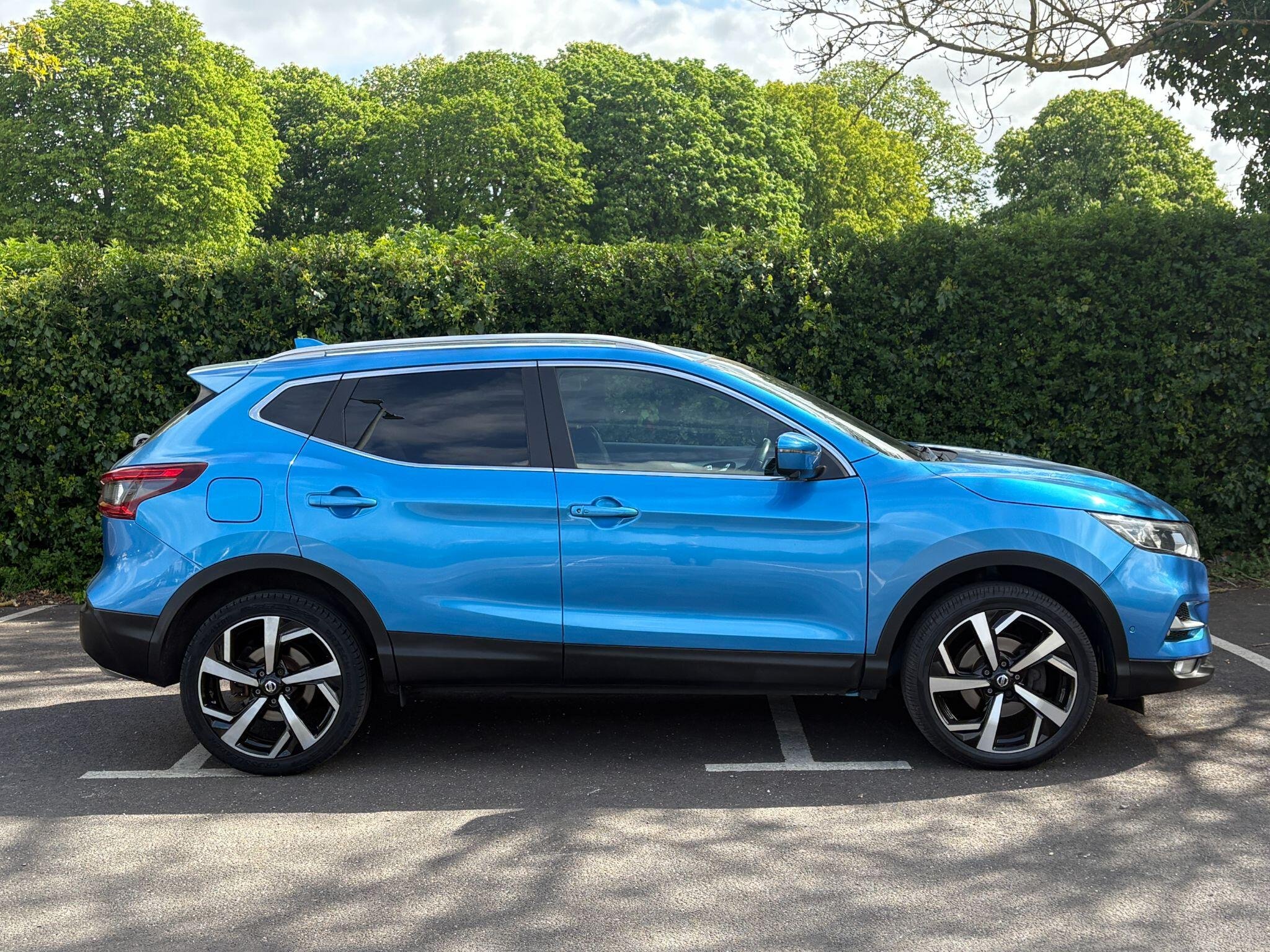 Nissan Qashqai 1200cc Petrol, AUTOMATIC, in Blue Metallic with Black Half Leather trim, Reversing Camera, Electric Seats, Satellite Navigation, Only 69,000 Miles Service History, A Rare Economical Petrol SUV Automatic in Great Condition, HPi Checked & Clear Certificate Supplied, 1 Key, Warranty